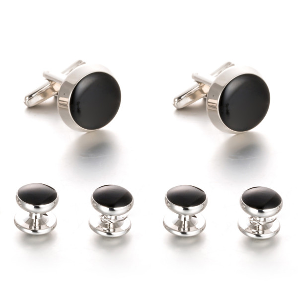 BOUTONS DE MANCHETTE PLUS 4 PIÈCES GOUJON, NOIR AGATE , MODE CLASSIQUE POUR HOMMES CHEMISE BUSINESS MARIAGE OU CADEAU D'ANNIVERSAIRE.