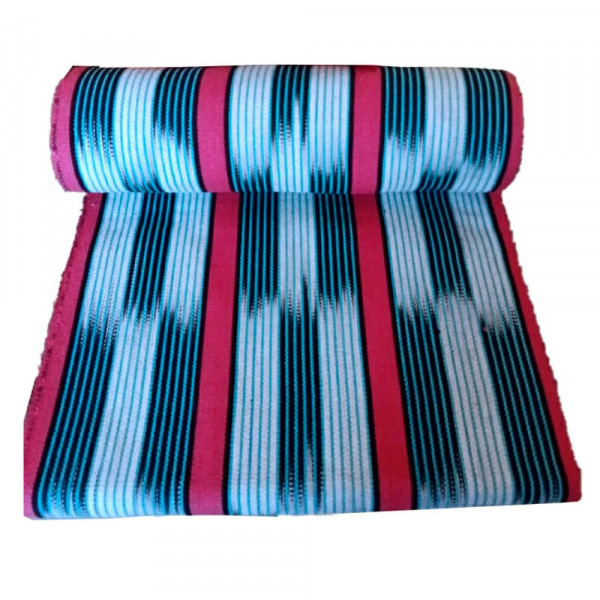 Il est tissé à la main et en bande assemblée ensuite pour former un pagne riche en couleurs.