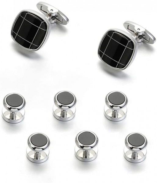 Boutons De Manchette Et 6 pièces Goujons Ensemble, Boutons De Manchette Noir Classique pour Chemises Anniversaire De Mariage d'affaires Cadeaux d'anniversaire