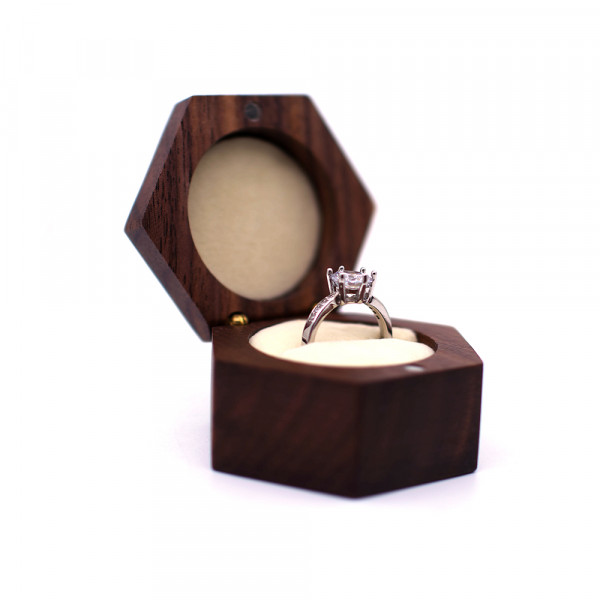 BOÎTE À BAGUES À BIJOUX EN BOIS DE NOYER DE MARIAGE POUR CADEAU.