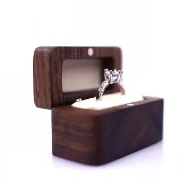 BOÎTE À BAGUES À BIJOUX EN BOIS DE NOYER DE MARIAGE POUR CADEAU.