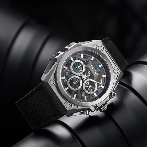 Dispositif : Date automatique, Chronographe, Calendrier complet, Jour/date, Non Spécifié, Eau Résistante, Imperméable à l’eau, Lumineux, Lumineux Mains, Résistant aux chocs, Chronomètre, Petit de trois aiguilles