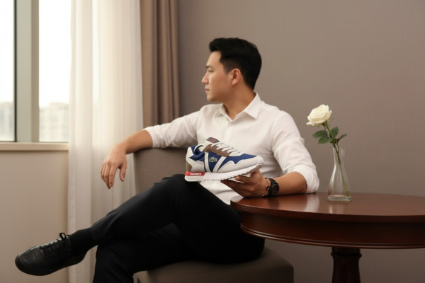 Affirmez votre style avec cette chaussure homme bleu et beige élégante inspirée Lacoste .