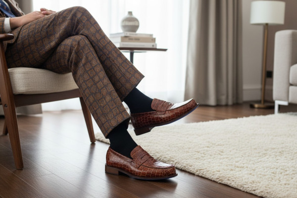 Affirmez votre présence avec ce mocassin homme effet croco marron au design puissant et raffiné.