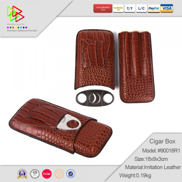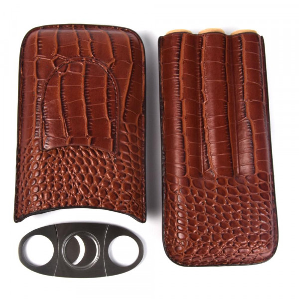 boîte à cigares Boîte à cigares, étui à cigares, comprend coupe-cigares en acier inoxydable de qualité supérieure, la peau de crocodile, parfait for les amateurs de cigares (Couleur: Brun)