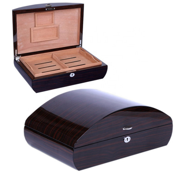 Boîte à cigares en bois de cèdre avec finition, couronne en diamant, en forme d’arc