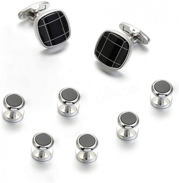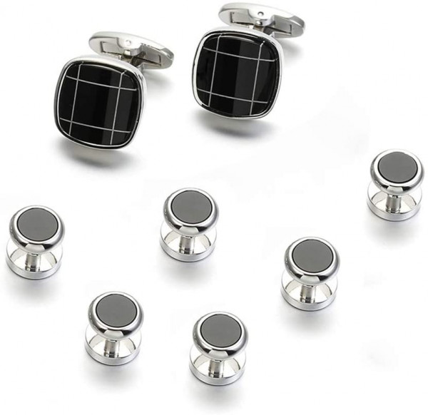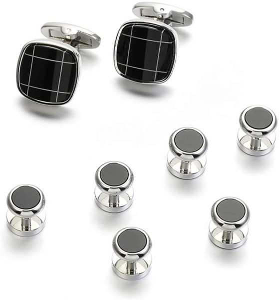 Boutons De Manchette Et 6 pièces Goujons Ensemble, Boutons De Manchette Noir Classique pour Chemises Anniversaire De Mariage d'affaires Cadeaux d'anniversaire
