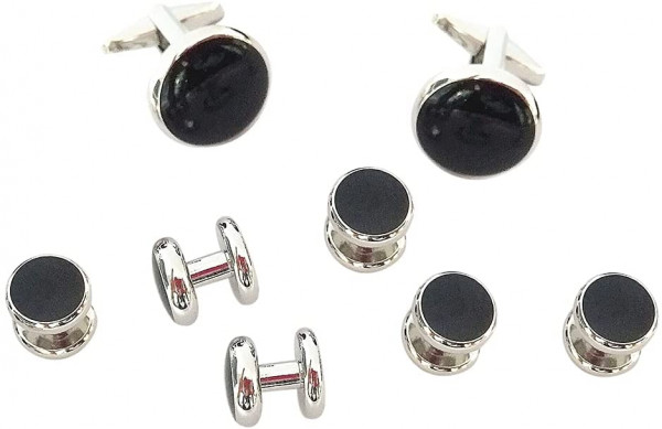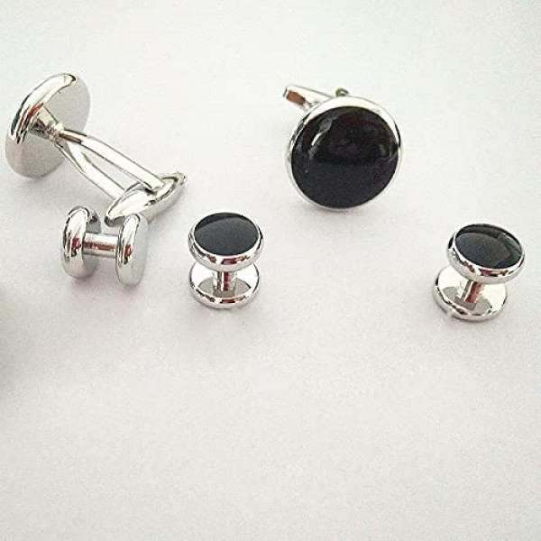 BOUTONS DE MANCHETTE AGATE ARGENTEE PLUS 6 PIÈCES GOUJON, MODE CLASSIQUE POUR HOMMES CHEMISE BUSINESS MARIAGE OU CADEAU D'ANNIVERSAIRE.