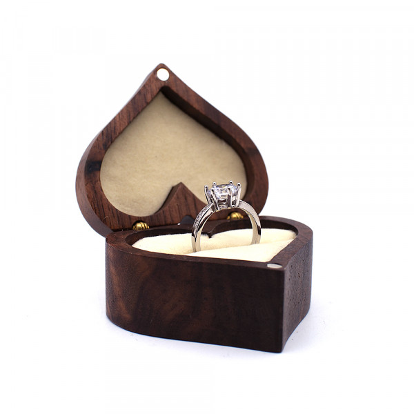 BOÎTE À BAGUES À BIJOUX EN BOIS DE NOYER DE MARIAGE POUR CADEAU.