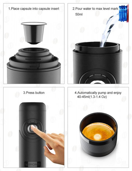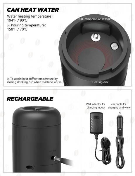 - Cette cafetière portable est une machine à café électrique pour l’extraction automatique d’une machine à main lors d’un camping ou d’un voyage à la maison. Il dispose d’un câble d’alimentation USB pour une utilisation pratique.