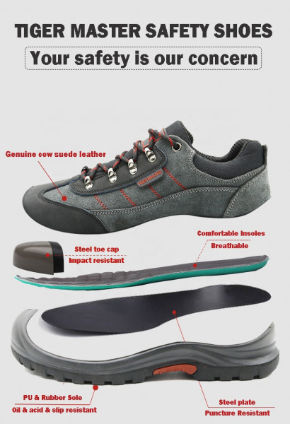 Cuir suédé antidérapant résistant à l'huile d'unité centrale semelle en caoutchouc embout en acier empêcher la perforation chaussures de sécurité de sport travail