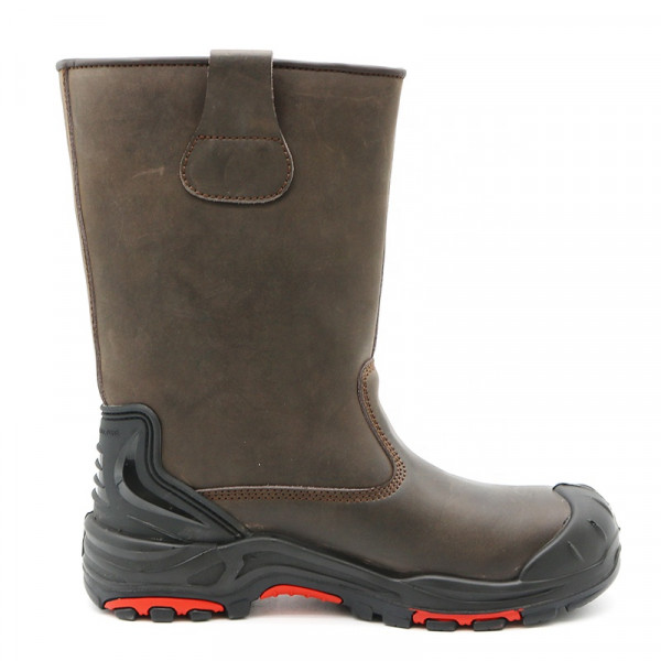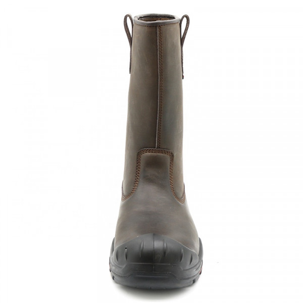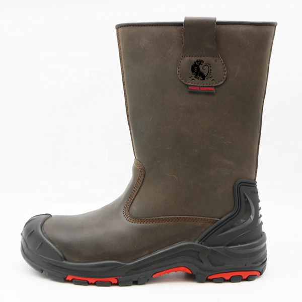 Semelle extérieure en caoutchouc antidérapante résistante à l'huile et à l'eau, bout en composite, bottes hautes anti-perforation en cuir marron