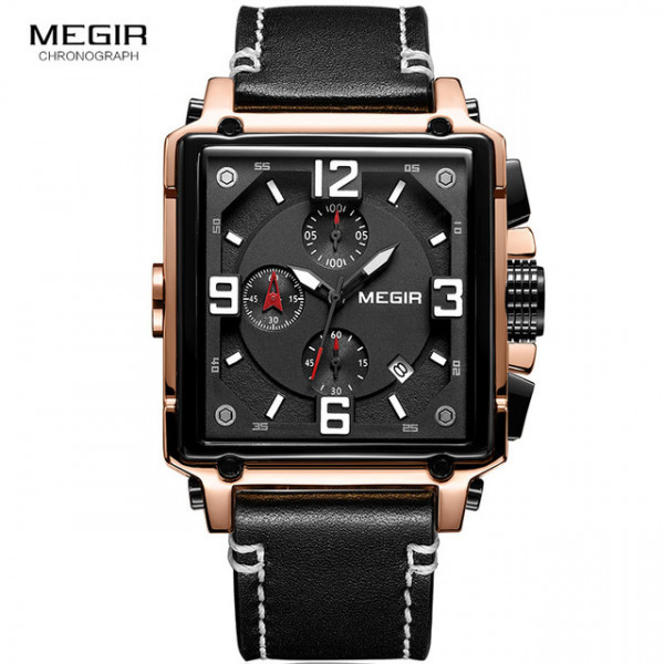 MEGIR MONTRE RECTANGULAIRE HOMME ÉTANCHE CLASSIQUE QUARTZ CHRONOGRAPHE AVEC BRACELET EN CUIR FASHION CADEAU