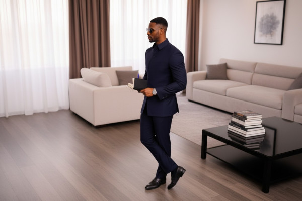 Adoptez une élégance sobre et puissante avec cet ensemble homme bleu nuit premium, parfait pour un style moderne et raffiné.