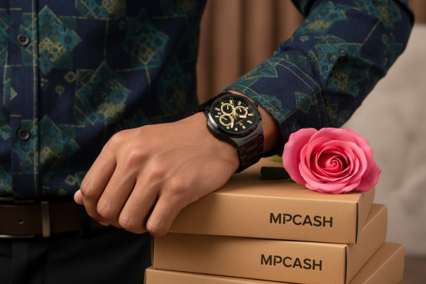 Affirmez votre présence avec cette montre homme au design noir intense et finitions dorées.