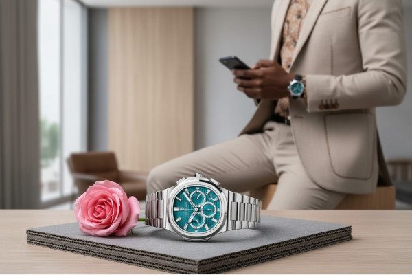 Adoptez un style moderne avec cette montre homme au cadran turquoise original.