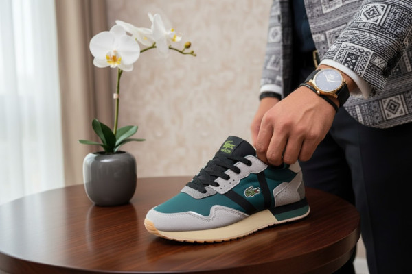 Affirmez votre style avec cette chaussure homme vert/bleu et gris élégant inspirée Lacoste.