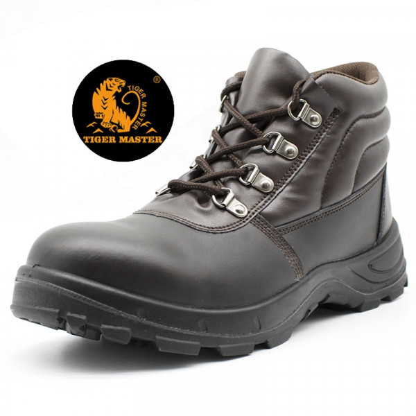 Antidérapant résistant à l'huile de coupe moyenne empêchant la perforation Construction en cuir marron bottes de sécurité de travail embout en acier