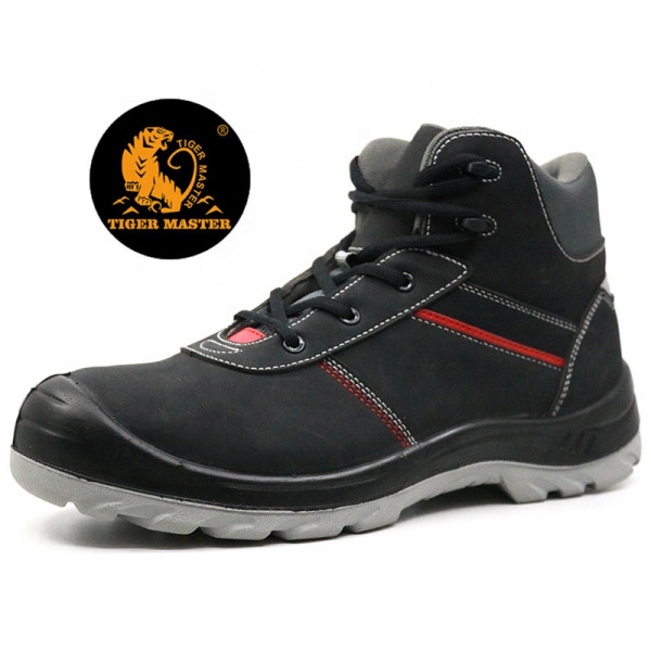 Cuir nubuck noir antidérapant embout en acier antistatique empêchant la protection contre les crevaisons chaussures de sécurité du travail .