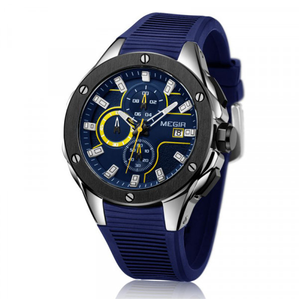 MEGIR — MONTRE DE SPORT AVEC BRACELET EN SILICONE POUR HOMMES, STYLE MILITAIRE, À QUARTZ, ERKEK KOL, COLLECTION 2053