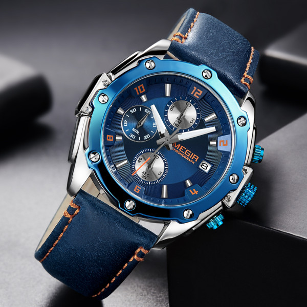 MEGIR — MONTRE-BRACELET EN CUIR POUR HOMMES, ACCESSOIRE À LA MODE, ÉTANCHE, DÉCONTRACTÉE, LUMINEUSE, À CHRONOGRAPHE, 2094